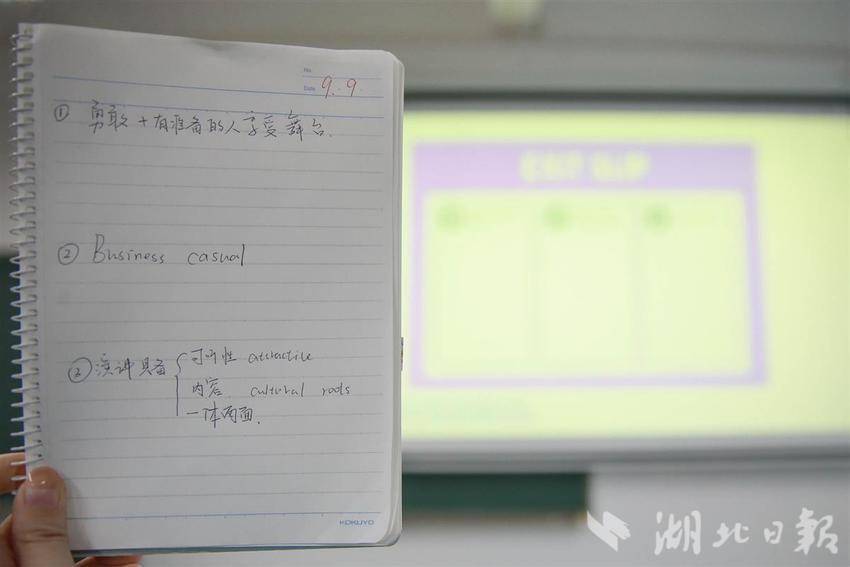 9月23日,武汉商学院外国语学院下课铃声响起,学生有序排好队凭“票”出门。验“票”的人正是这堂课的讲师胡荃。这里的“出门票”并非真正意义上的有价票证,而是同学们的课堂笔记。学生需要在门票上写下三个在本次课堂中真正记住的知识或得到的启发与思考。课堂结束时,学生把完成的“出门票”给老师查看后就可以有序离开教室。