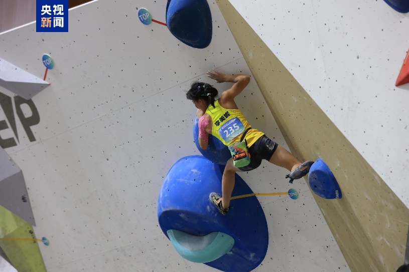 攀石项目比赛中,来自广东队的李美妮和胡隽喆分获女子组、男子组冠军;难度项目比赛,江苏队俞辰萱、湖北队潘愚非分获女子组、男子组冠军。