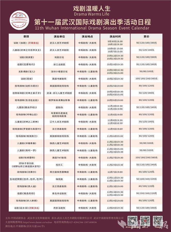 湖北日报讯(记者王理略、通讯员王雅婷)9月25日,记者获悉,由中国话剧协会、武汉市文化和旅游局主办,武汉人民艺术剧院、中南剧场承办的第十一届武汉国际戏剧演出季将于9月30日开幕。