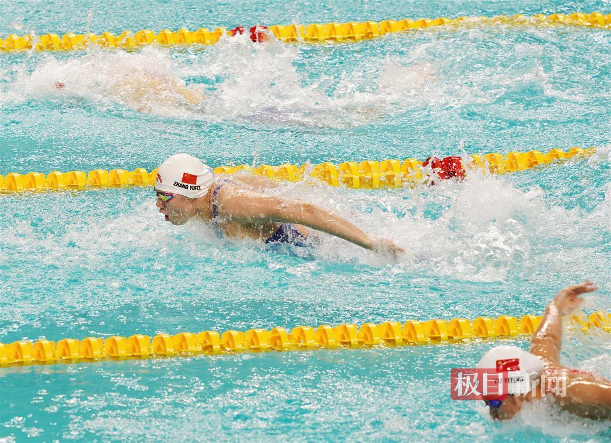 女子50米蝶泳决赛,共有8名选手参赛,张雨霏代表江苏队在第四道登场。赛场上的张雨霏状态松弛,一路领先,最终以25秒16的成绩夺得冠军。比赛结束不到40分钟,晚上8时56分,张雨霏再度站上了赛场,与江苏队队友一同参加男女4x50米混合泳接力决赛,她在第三棒登场。最终,江苏队以1分38秒70的成绩夺冠。