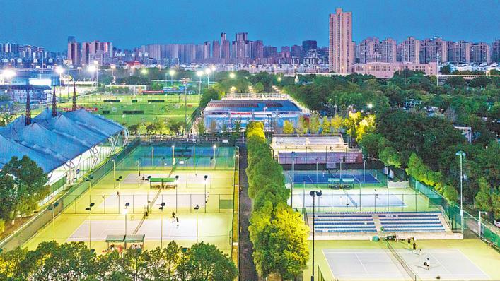 武汉塔子湖体育中心网球场,14片网球场地每天供不应求。 (湖北日报全媒记者 任勇 摄)