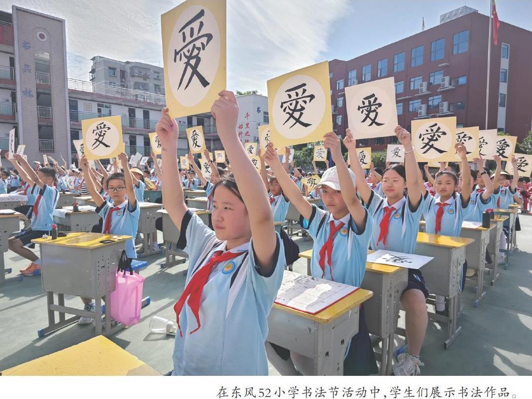每年5月书法节是东风52小学的盛会,千余名师生现场挥毫泼墨,集中展示书法成果,学生们开展与书法相关的文艺表演,教师们开展主题研讨、举行书法比赛……在丰富多彩的活动中,师生对书法的认同感不断提升。