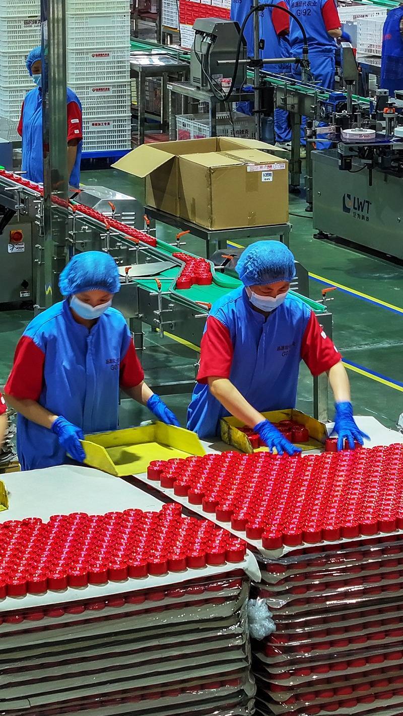 5月13日,品源(随州)现代农业发展有限公司员工在包装出口的香菇辣酱。该公司开发香菇辣酱系列产品,出口美国、澳大利亚、俄罗斯、日本、韩国等20多个国家和地区。(湖北日报全媒记者 田悦 通讯员 郭海洲 摄)