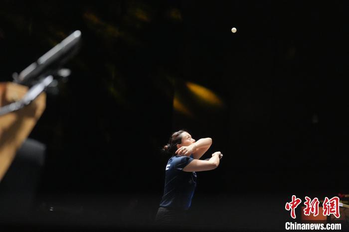 9月26日,2024年世界乒乓球职业大联盟WTT中国大满贯在北京首钢园拉开战幕。比赛将持续至10月6日,其中9月26日至28日为资格赛阶段。图为在女子单打预赛第1轮比赛中,中国台北选手李昱谆3比2胜德国选手万远。图为万远在比赛中发球。中新社记者 赵文宇 摄