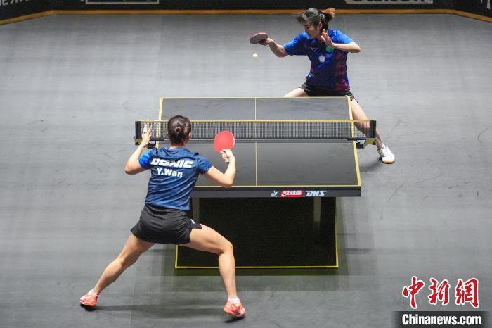 9月26日,2024年世界乒乓球职业大联盟WTT中国大满贯在北京首钢园拉开战幕。比赛将持续至10月6日,其中9月26日至28日为资格赛阶段。图为在女子单打预赛第1轮比赛中,中国台北选手李昱谆(右)3比2胜德国选手万远。中新社记者 赵文宇 摄