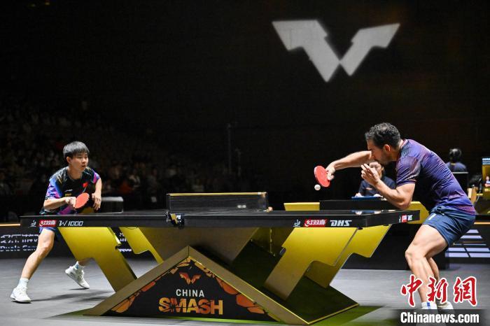 9月26日,2024年世界乒乓球职业大联盟WTT中国大满贯在北京首钢园拉开战幕。比赛将持续至10月6日,其中9月26日至28日为资格赛阶段。图为在男子单打预赛第1轮比赛中,中国香港选手陈颢桦(左)2比3不敌印度选手玛纳什·沙。中新社记者 赵文宇 摄