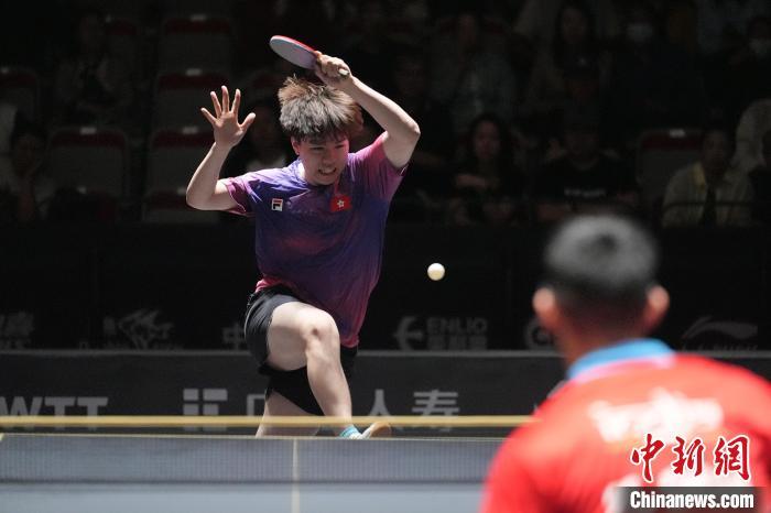 9月26日,2024年世界乒乓球职业大联盟WTT中国大满贯在北京首钢园拉开战幕。比赛将持续至10月6日,其中9月26日至28日为资格赛阶段。图为在男子单打预赛第1轮比赛中,中国选手曾蓓勋3比2胜阿尔贝托·米诺。图为曾蓓勋在比赛中。中新社记者 赵文宇 摄
