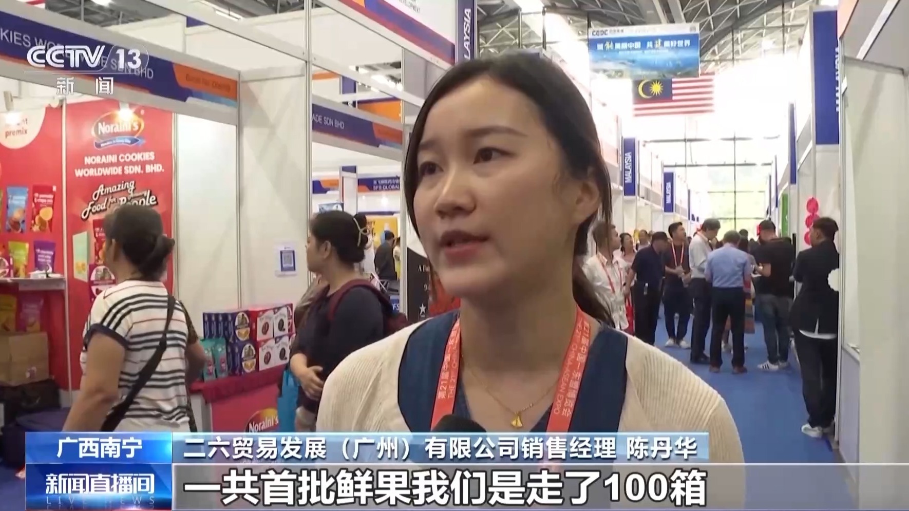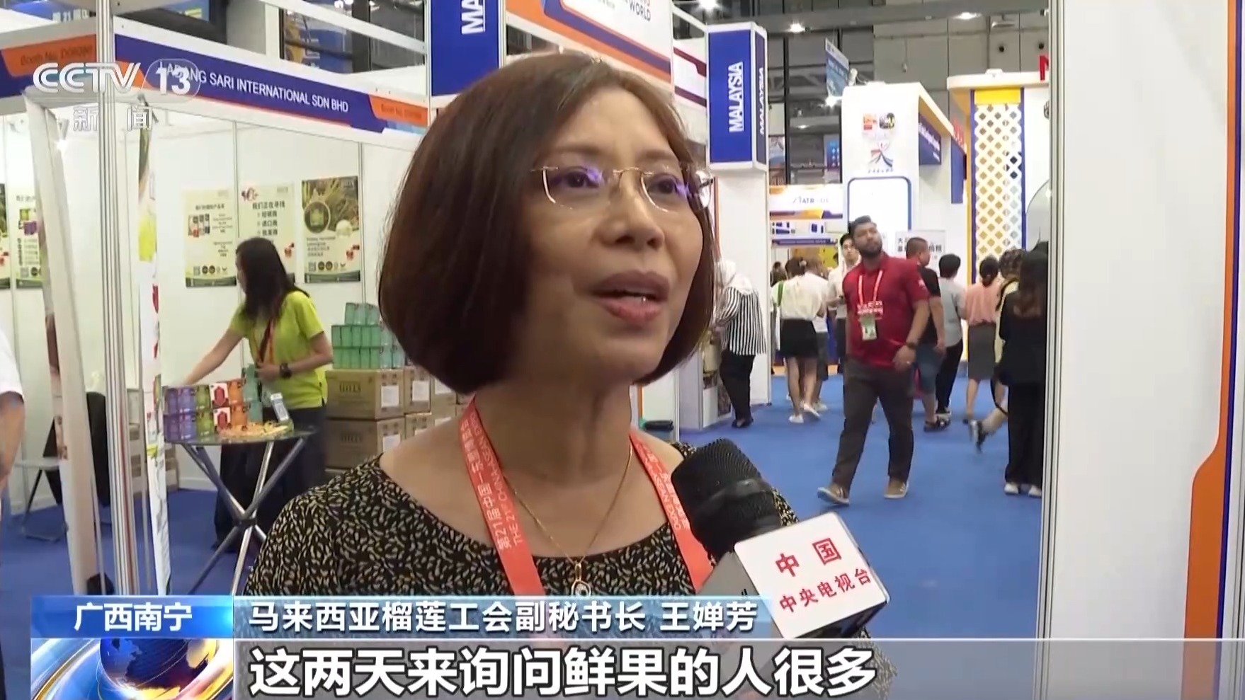 马来西亚榴莲工会副秘书长 王婵芳:这两天来询问鲜果的人很多,甚至他们都要下订单要签约,让我们觉得中国榴莲鲜果的市场非常大。
