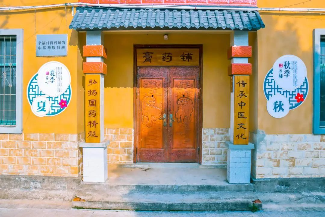 为进一步推动中医文化传播,村委链接高校大学生实践团队,根据柳太婆的故事及其医者仁心的人物形象设计了极具特色的IP形象、旅游打卡点,吸引更多游客前来。同时,幸福村在膏药铺建设了一座中医馆,作为展示与传承膏药文化的实体阵地。村民们还自发捐赠了老祖辈们传承下来的长兴堂膏药老店牌匾及很多具有年代特色的中医药材店的古老器物,共同为中医馆的建设与运营贡献力量。