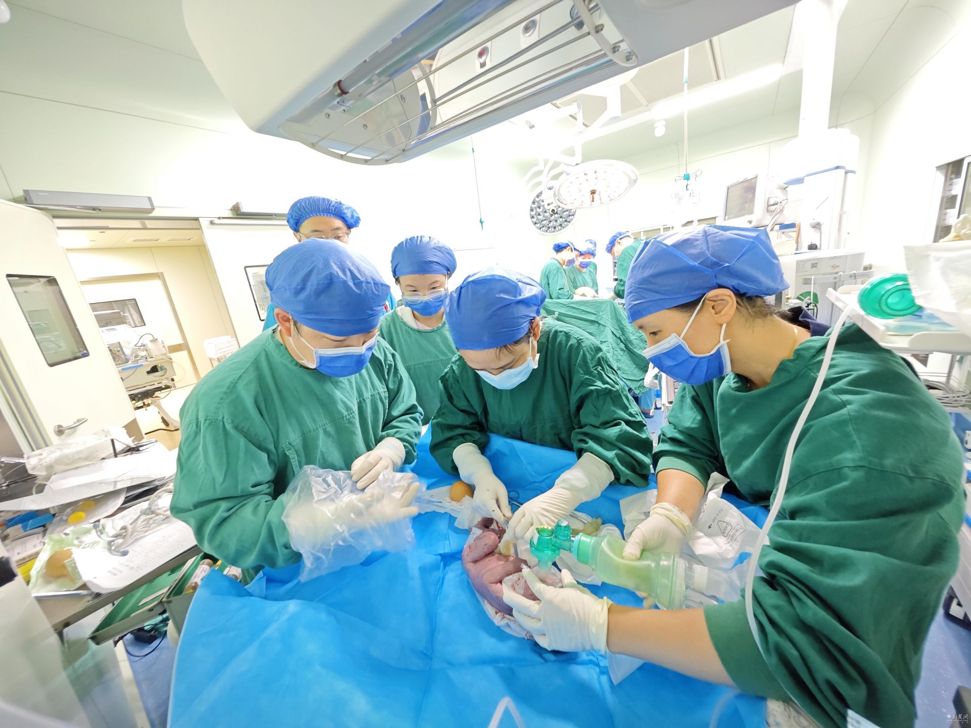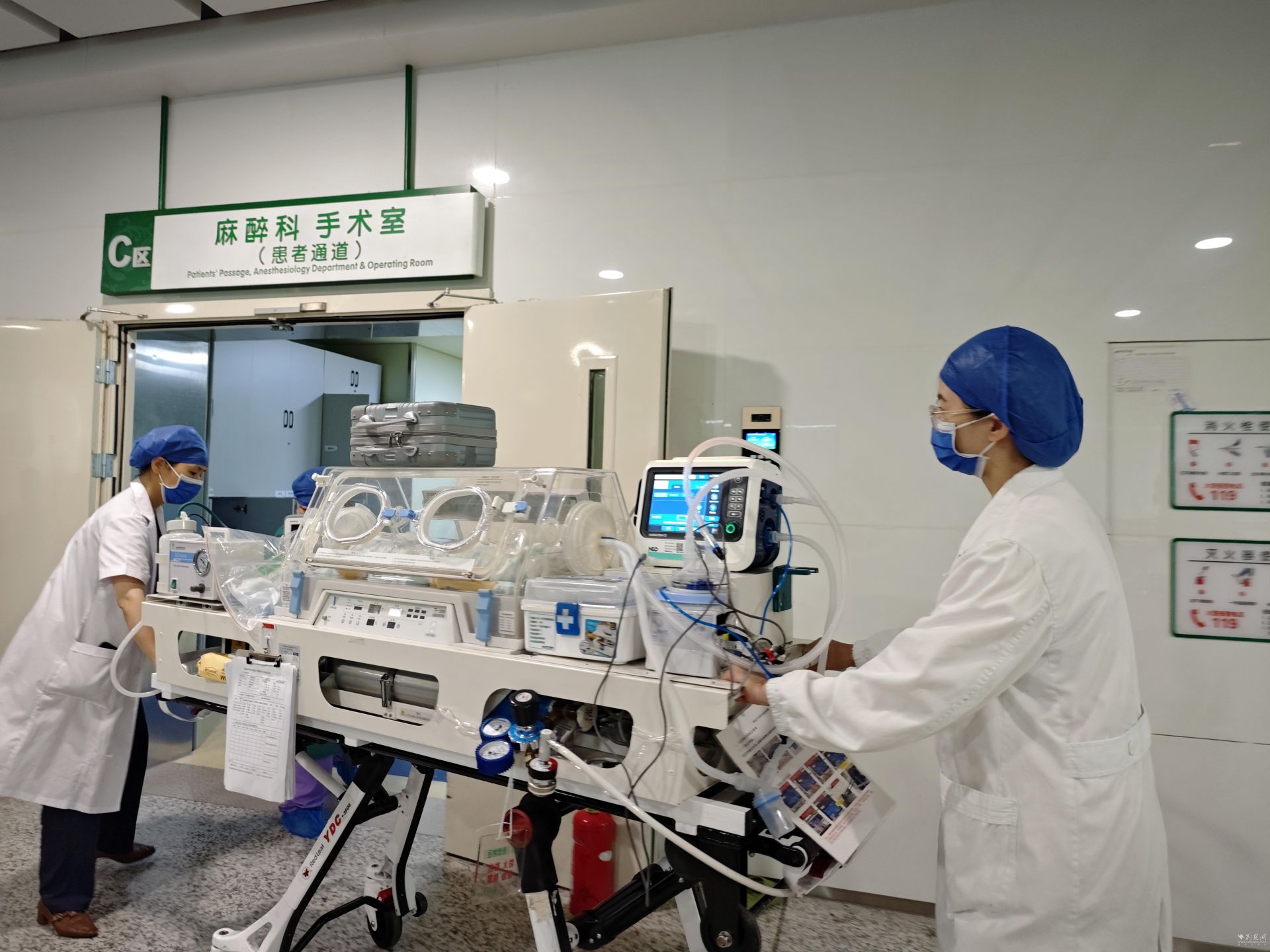 魏女士被推进手术室的那一刻,新生儿科主任朱晓芳便带领团队严阵以待,重症转运系统也准备就绪,只等宝宝出生后能顺利转运至新生儿科重症监护病房。