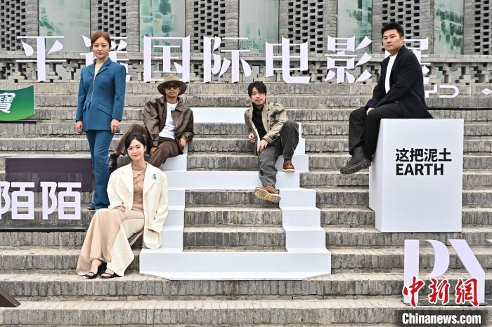 9月27日,山西省晋中市平遥古城,演员章宇(左二)携《“小”人物》电影主创人员亮相第八届平遥国际电影展。该片是年轻导演周铨(中)执导的首部电影,由章宇、辛柏青、柳岩、姜卓君(右二)、郭月(右一)等主演,于本届平遥国际电影展期间首映。中新社记者 韦亮 摄