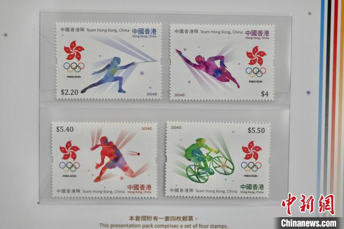 图为香港邮政推出的“支持中国香港代表队出战2024巴黎奥运”一套4枚特别邮票。中新网记者 李志华 摄