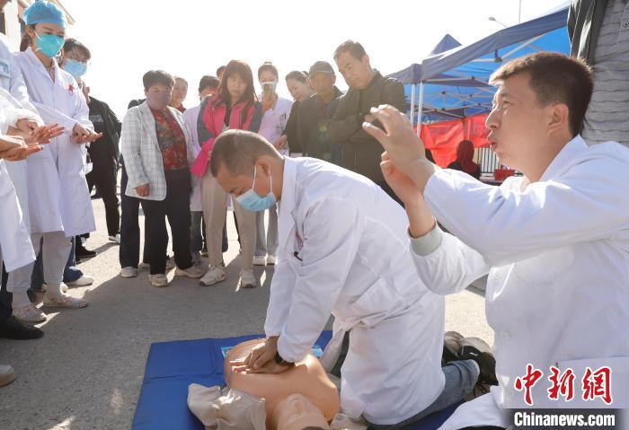 另一边,宁夏医科大学总医院急诊科护理组长景亚歧用假人现场演示海姆立克急救法。站在一旁观摩学习的掌政中心卫生院公共卫生科专干马佳表示,希望青年博士团多来几次,让乡镇的医务人员有更多学习机会。