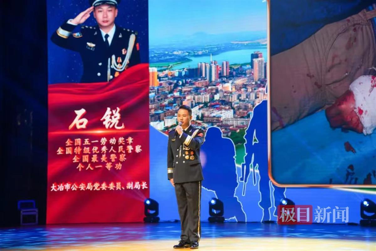 会上,大冶市公安局党委委员、副局长石锐作为全省公安英模代表,分享了自己16年从警生涯的难忘瞬间和深刻感悟,也是大冶公安近些年忠诚履职、守护平安的真实写照。现年37岁的石锐2008年10月参警,历任大冶市公安局东岳路派出所民警、刑侦大队副中队长、陈贵派出所副所长、刑侦大队副大队长、金牛派出所所长,现任大冶市公安局党委委员、副局长。从警十多年来,他为保护人民群众的安危,曾在街头浴血斗歹徒,身受重伤;为打击黑恶势力,他勇挑重任,多次参与扫黑除恶急难险重案件的侦办工作,累计破获各类案件900余起,抓获违法犯罪嫌疑人300余人。曾荣立个人一等功1次、三等功1次,嘉奖5次,先后获评湖北省青年“五四”奖章、“全国最美警察”、全国“五一”劳动奖章等荣誉称号。2022年获评“全国特级优秀人民警察”“荆楚楷模”和“湖北好人”。