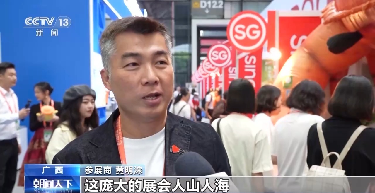 参展商 黄明涞:来第一次就上瘾了,这庞大的展会人山人海。试吃的人很多,一天三万个小杯子,市场上的小杯子被我买完了,卖货的人说没有小杯卖了。