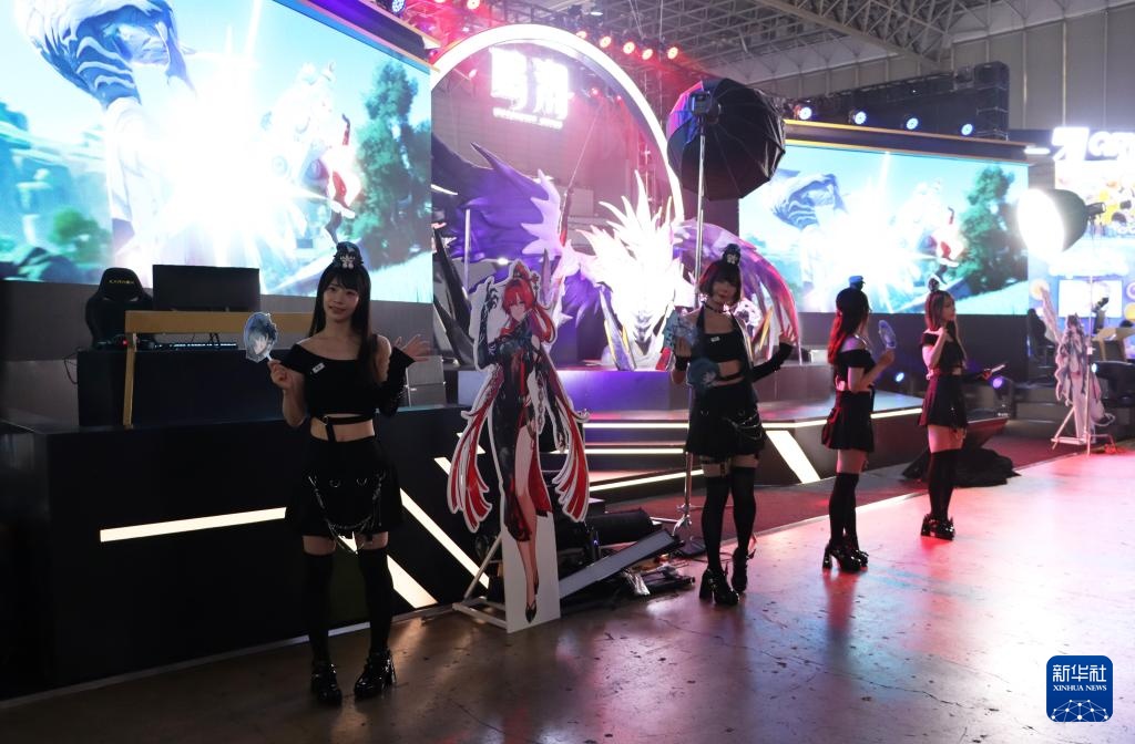 这是9月26日在日本千叶拍摄的东京电玩展上的中国游戏《鸣潮》展台。