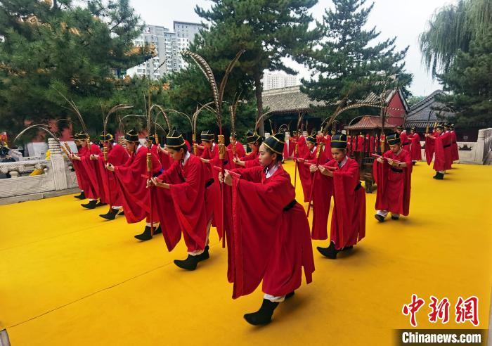 9月28日,2024热河文庙甲辰年祭孔典礼活动现场,36名舞者跳起六佾舞。 张桂芹 摄