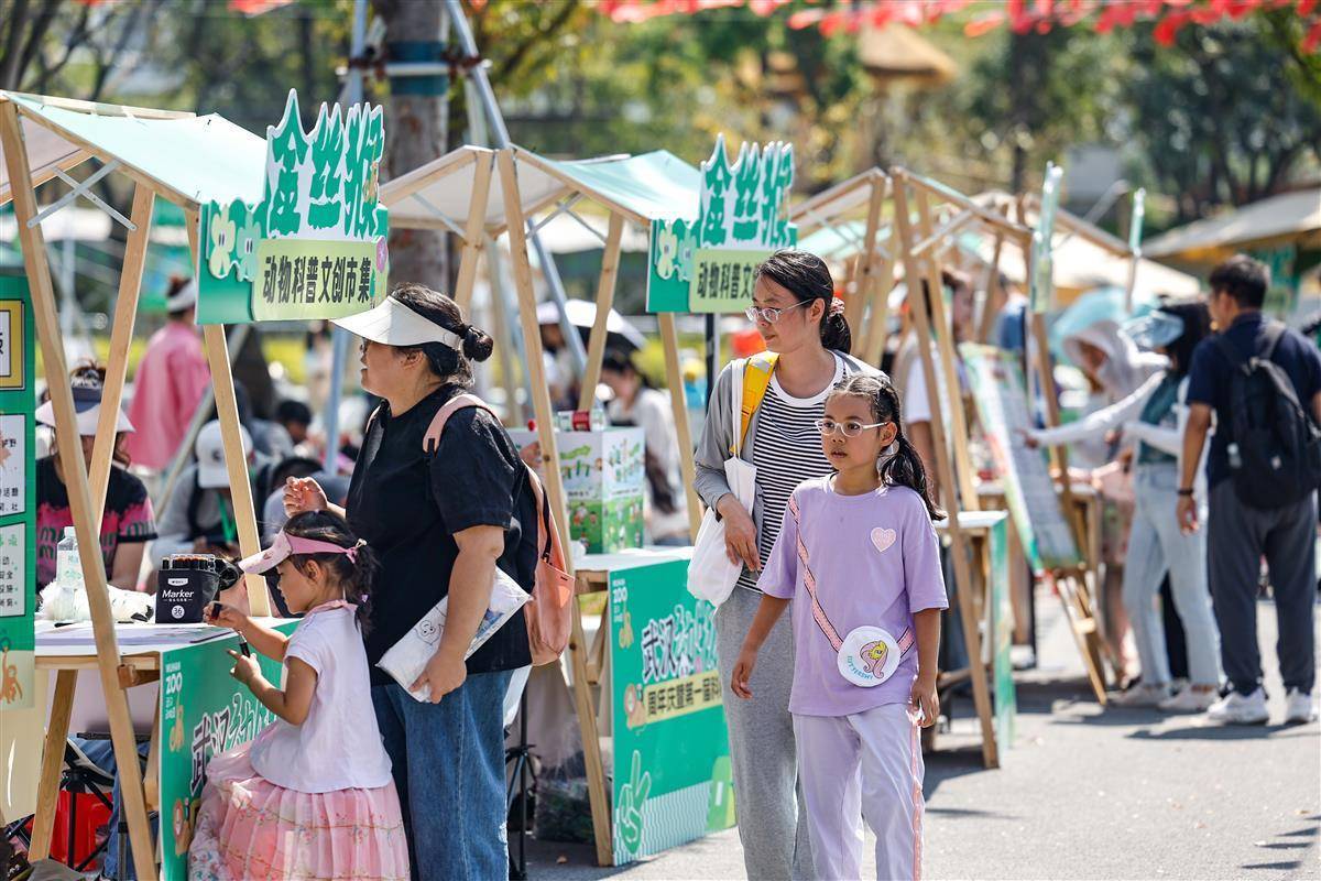 在动物园北广场上,还设有“金丝猴动物科普文创市集”,20个科普文创摊位安排了动物科普、文创展示、手工制作等丰富多样的活动。“动物园里的熊会冬眠吗?”“金丝猴的主要食物是水果还是树叶?”“亚洲象和非洲象,谁的体型更大?”……这些动物科普通过趣味问答的方式进行传播,吸引了不少家长带着孩子参与。