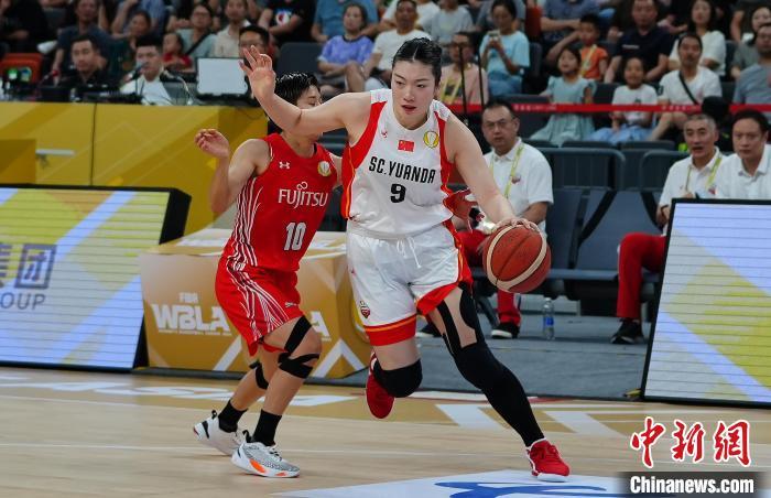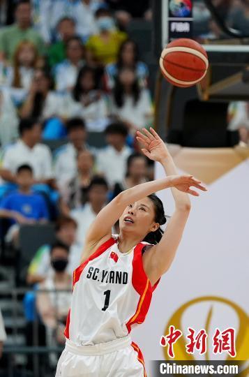 9月28日晚,在成都进行的首届国际篮联亚洲女子篮球联赛,中国四川远达美乐队以74:69战胜日本富士通红浪队,夺得冠军。图为中国四川远达美乐队1号队员王思雨(白衣 )在比赛中。中新社记者 安源 摄