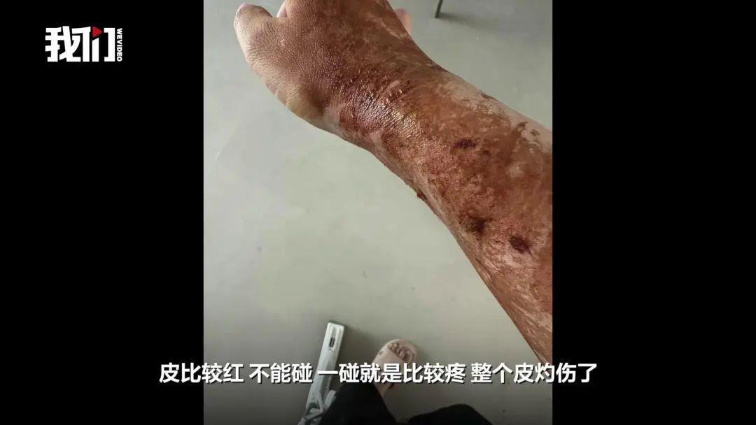王女士称,自己胳膊被灼伤,一碰就疼,没想到气球危害这么大。