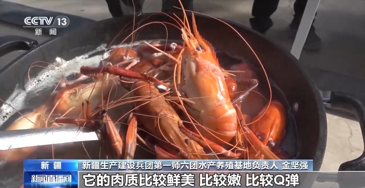 新疆生产建设兵团第一师六团水产养殖基地负责人 金坚强:昨天卖得很不错,也很火爆,排队排到(凌晨)两点钟。像新疆来说一定的盐碱度反而是更适应养殖了,病害方方面面都减少了。这光照足,水比较好养,藻类比较丰盛,肉质比较鲜美、比较嫩,比较Q弹。