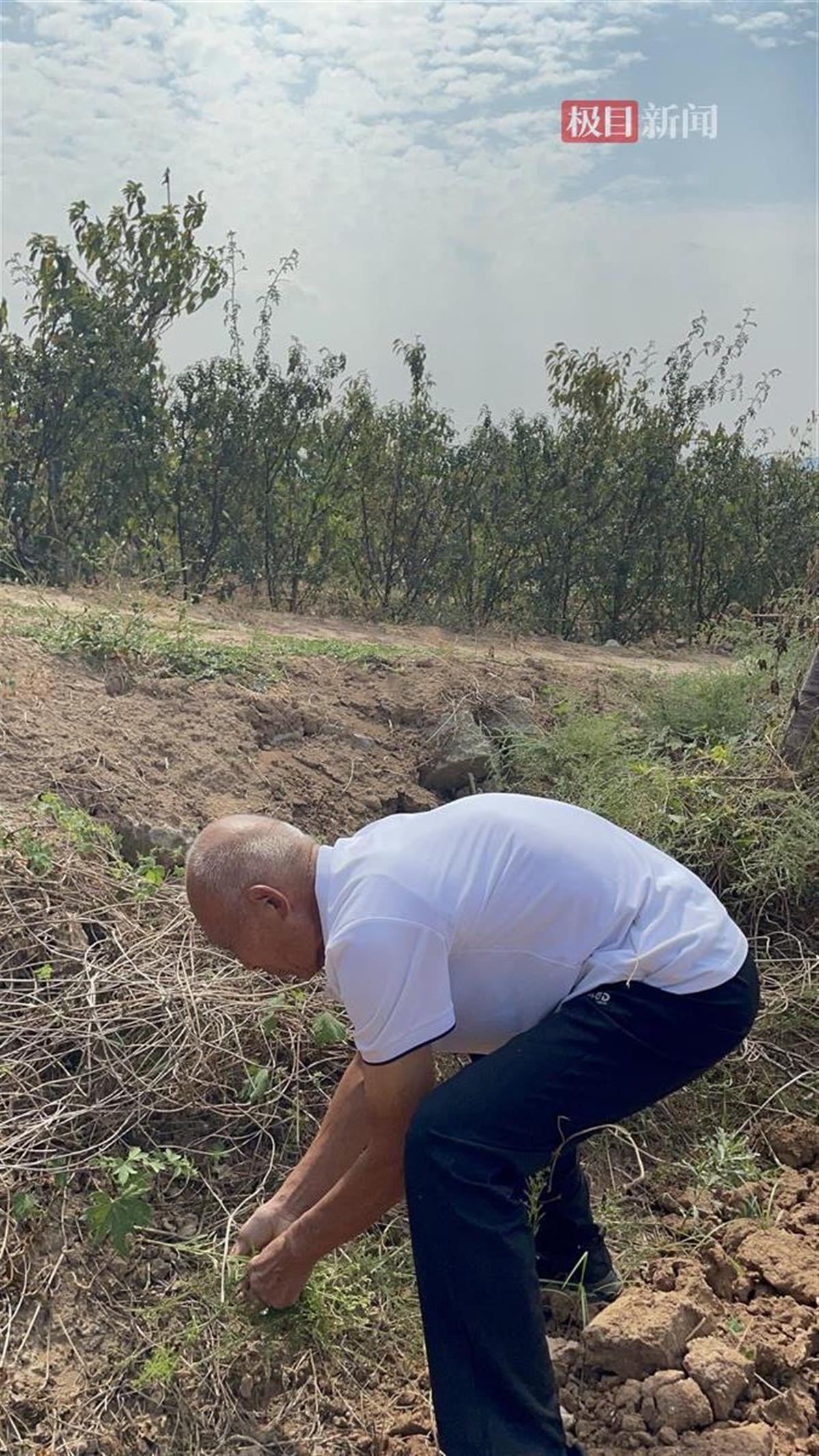 陈有银在地里除杂草