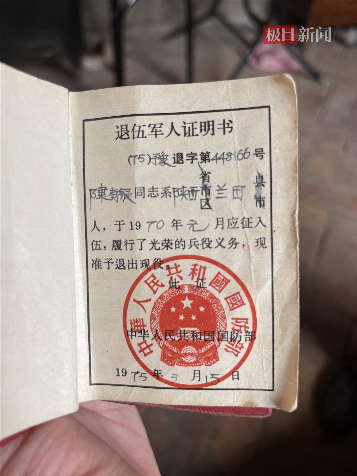 陈有银的退伍军人证明书
