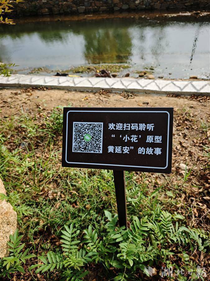 “赢得天下春常在,迎来家乡山河秀……”吴店镇浆溪店红色文化园里,游人不时扫码,“小花”的主题曲不时从手机上飘出。
