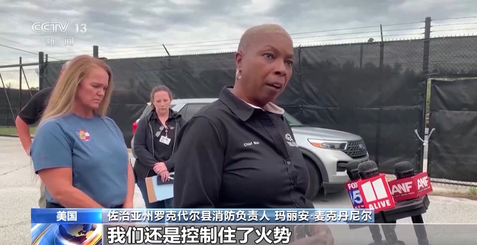 佐治亚州罗克代尔县消防负责人 玛丽安·麦克丹尼尔:火灾一直在持续,我们一直在用水灭火,但水也加剧了化学反应,所以这是双方面的。我们还是控制住了火势。