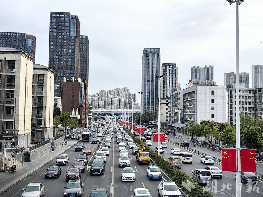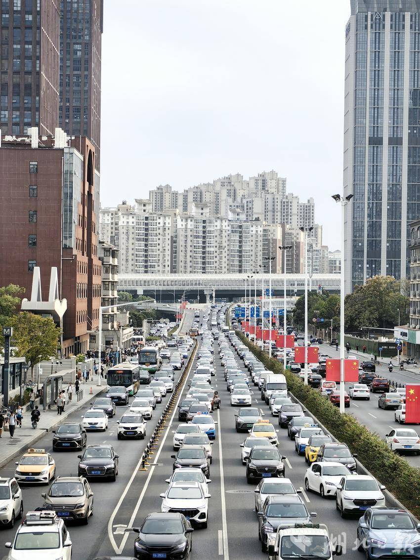 9月30日下午4时许,武汉珞狮路出现道路交通拥堵,当晚6时,武汉大道水果湖隧道等路段车辆滞留。武汉交管部门信息,国庆假期全市交通流量将呈现明显增长,届时进出城道路、火车站、热门景区、环线等交通节点压力集中,将呈现“节前拥堵、节中平稳、出城较为集中、返程较为分散”的交通态势。武汉交警提醒请广大市民和游客,提前规划好探亲、出游线路,前往黄鹤楼、东湖等景区提前预约停车泊位,出行前通过导航了解目的地停车信息、关注实时路况,错峰、避堵,优选公共交通绿色出行。(湖北日报全媒记者 田悦 摄)