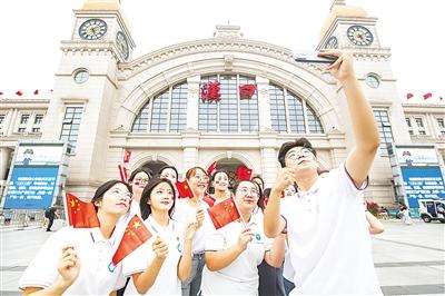 9月30日下午,汉口火车站南广场,一场合唱“快闪”活动吸引大批旅客驻足观看。《红旗飘飘》《歌唱祖国》……华中师范大学学生们与汉口站综管办工作人员一道,用嘹亮的歌声祝福伟大的祖国。他们还向旅客们发放国旗,转眼间广场上红旗飘飘,大家纷纷挥舞国旗打卡拍照。(湖北日报全媒记者 何宇欣 通讯员 陈新琳 卢俊霖 摄)