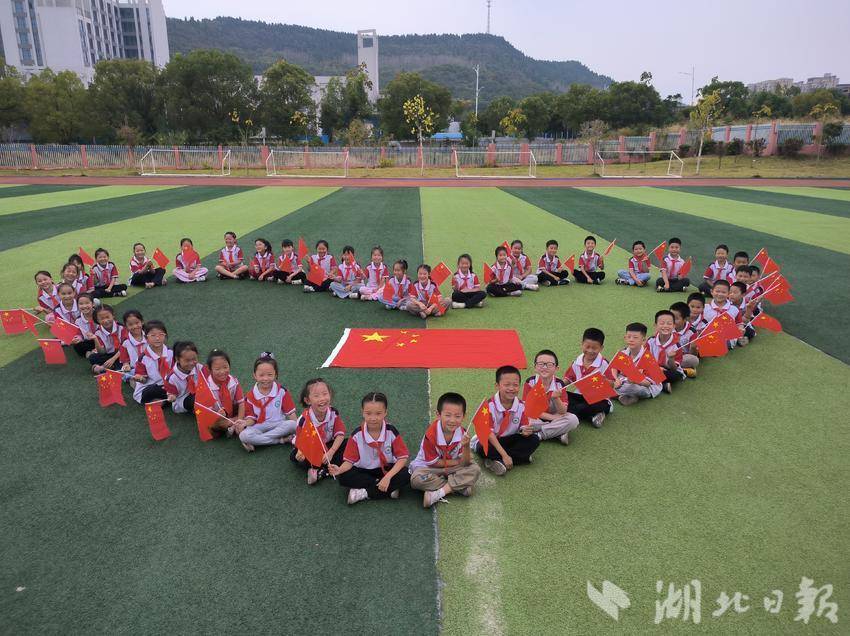 9月30日,天门市万林实验小学开展“小照片大情怀——我和国旗合个影”主题活动。学生们身穿整洁的校服,胸前佩戴鲜艳的红领巾,热情洋溢地挥舞着鲜艳的国旗,摆出各种姿势和队形,与国旗留下珍贵的合影。(湖北日报客户端天门频道 通讯员简娜 肖文)