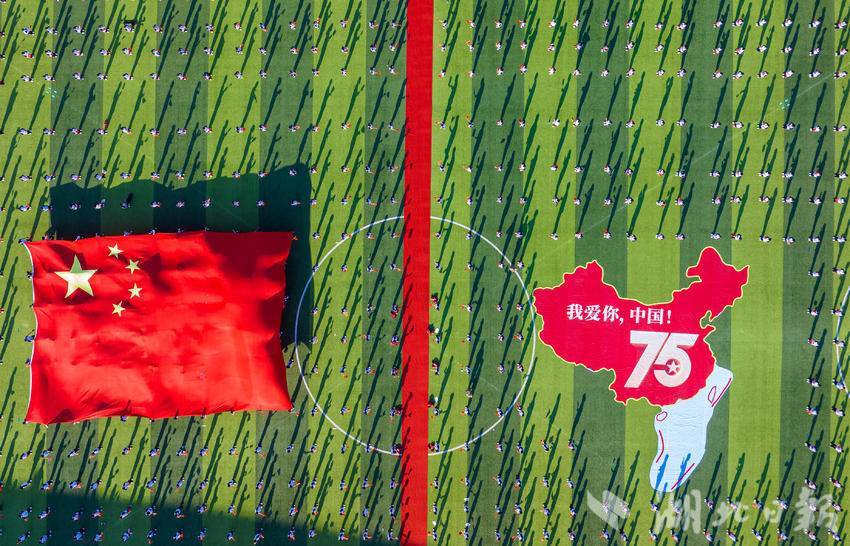 9月25日,襄阳市第五中学举行“我和国旗合个影”爱国主义主题活动,学生们摆出方阵与国旗合影,祝新中国生日快乐。(湖北日报客户端通讯员 杨东)