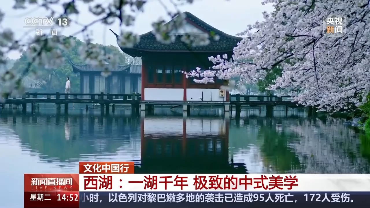 总台央视记者 于茜:从西湖博物馆走出来只要几百米,就可以走到西湖边,整个西湖风景区就像一个融合了自然景观和人文景观的天然博物馆,在这里,建筑和美学,历史和现实,科技和文化都浑然天成,和谐统一。