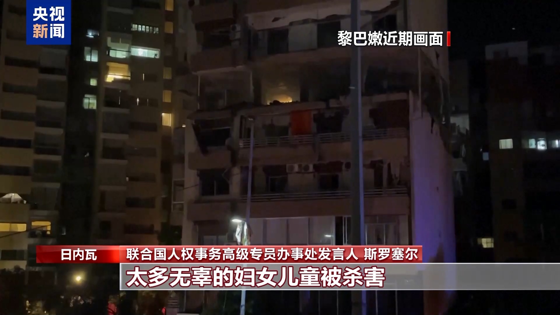 联合国人权事务高专办事处发言人斯罗塞尔表示,仅在过去两周,以色列对黎巴嫩的袭击就造成1000多人死亡。黎巴嫩境内还有数十万人流离失所,最近还有人逃往叙利亚。