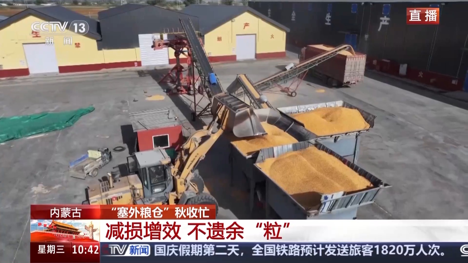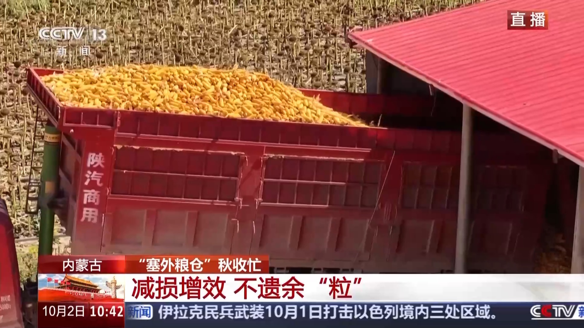 总台记者 宝音:这两天我在当地也观察到,由于种植玉米品种的不同,丰收过程中部分含水量低的玉米品种,可以通过收割脱粒一体机直接完成脱粒作业,但也有一定比例的玉米品种由于含水量比较大,不能直接进行机械化脱粒,农户往往需要先进行晾晒,过程也容易造成一定的损耗。眼下,巴彦淖尔当地也在推进建设仓储库房和玉米的烘干塔,减少玉米收获后的不必要损耗,确保颗粒归仓。