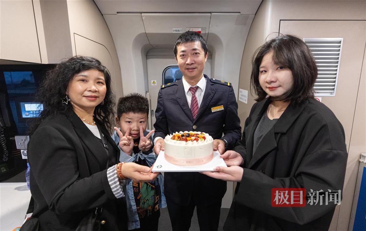 不到3分钟,董建国在工作间隙度过了简短的生日,四口之家留下一张珍贵合影后,童建国与家人告别,返回驾驶室准备着自己的行车“仪式”。