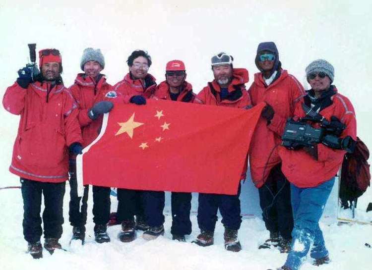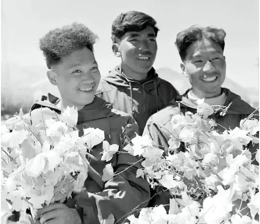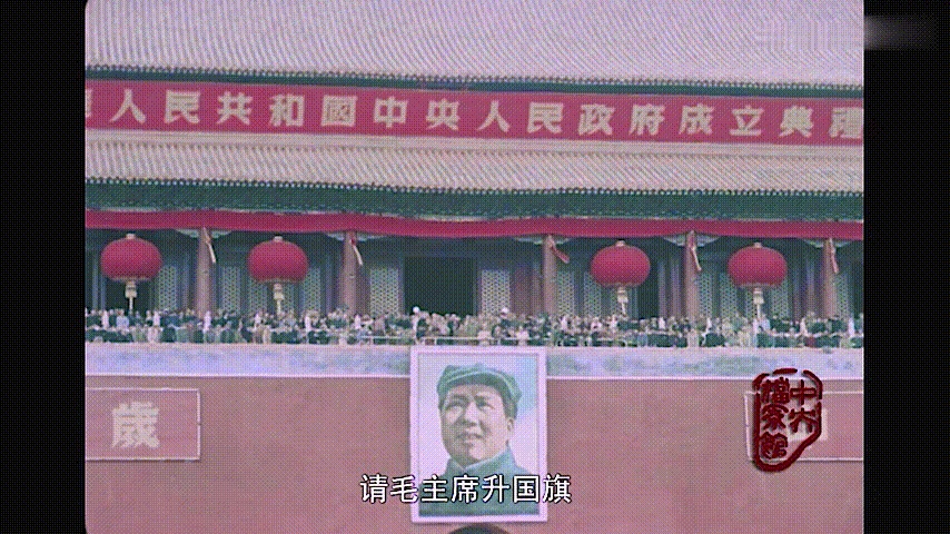 开国大典上,毛主席按动电钮,升起五星红旗。