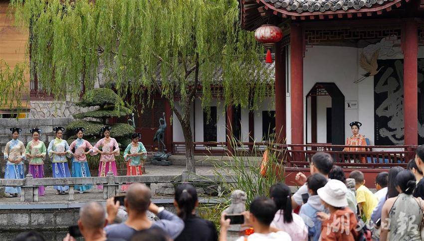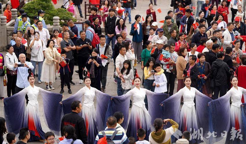 黄鹤楼,处蛇山之巅,临万里长江,是古今无数文人墨客笔下灵动的文化符号,也是不少游客心中武汉必打卡的景点之一。为了讲好这座承载着江城记忆的历史名楼的故事,除了“梦回太白”的对诗互动,国庆期间,景区还上新十几场文化活动。“清风弄墨”“鹤鸣九霄”“鹤舞楚天”,一场场户外实景演出轮番演绎,还有送风游戏、茶百戏互动、非遗民俗市集、活字拓印等活动,可玩可看,不断擦新擦亮黄鹤楼IP。黄鹤楼白云阁美术馆也对外开放,展出作品是黄鹤楼公园开放40年以来的馆藏精品,包括齐白石、李可染等名家之作。
