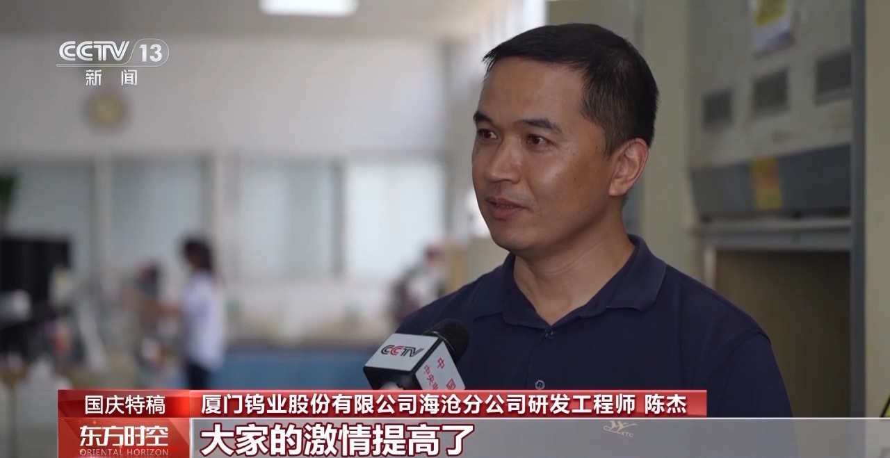 厦门钨业股份有限公司海沧分公司研发工程师 陈杰:大家的激情提高了,做事的效率也提高了,比如我们团队里有一个才来几年的小伙子,他为了一个研发任务,解决一些瓶颈问题,连续半年都待在实验室里做实验,他就觉得公司的创新机制、奖励机制以及创新的氛围很好,为公司做事,就像为自己做事一样。我们看到年轻人都这么努力,那我们老同志也要加油。