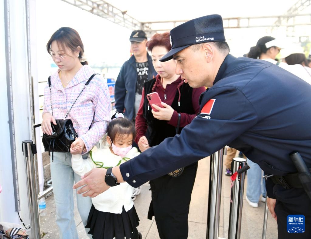 10月3日,丹东边境管理支队一经街边境派出所民警高岩在引导游客。