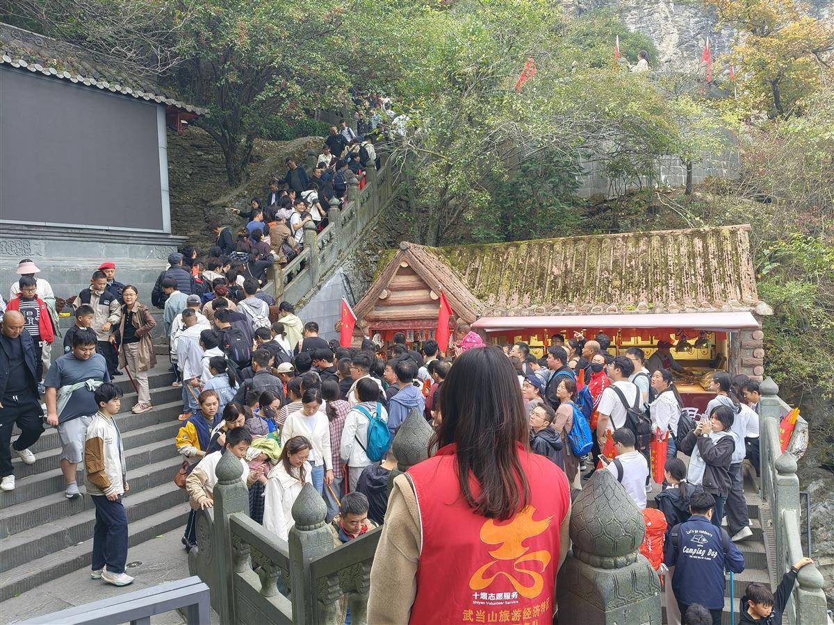 湖北日报讯(记者余宽宏、通讯员顾才华、金勤)十堰市文旅部门提供的数据显示,国庆假期前4天,武当山景区及周边景点日均接待游客突破2万人次,其中超过一半都是外地游客自驾出游。