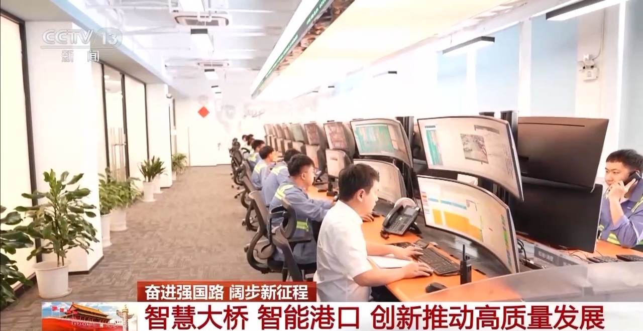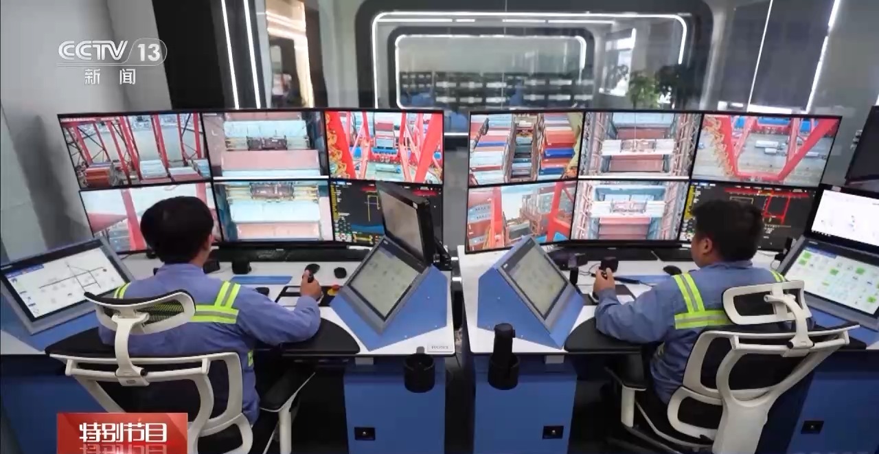 这儿就是所有桥吊和龙门吊的远控室,也是全球最大规模远控自动化设备集群。工作人员介绍,之前他们操控桥吊只能完全靠肉眼去看,长时间作业腰酸背痛,但是现在,司机只需要坐在办公室内,通过搭载的6个显示屏、19个摄像头,就可以全方位无死角查看现场情况。远程操控,大幅降低了劳动强度,也提升了作业安全性,工作人员说,现在操作桥吊就像抓娃娃一样轻松。