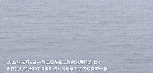 张家港海事局执法人员记录下江豚在长江张家港段戏水迎新年的画面。