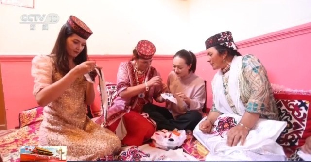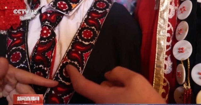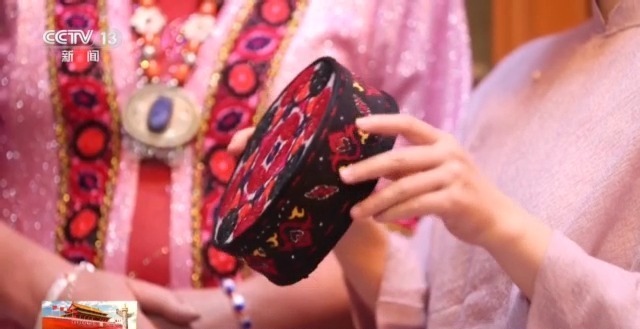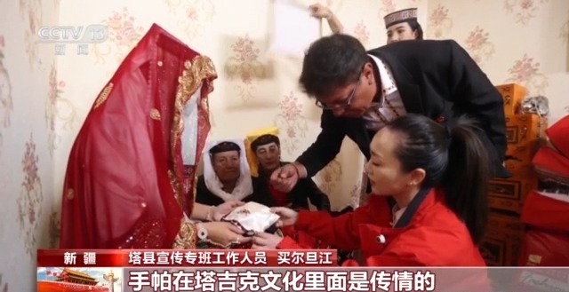 塔县宣传专班工作人员 买尔旦江:花纹都是纯手工刺绣的,手帕在塔吉克文化里面是传情的,她可以交给新郎。