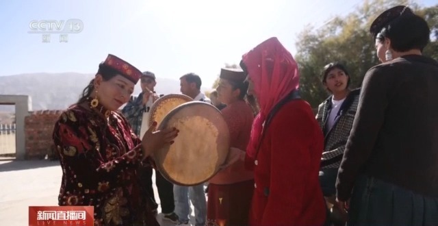塔县宣传专班工作人员 买尔旦江:这个就是我们塔吉克族结婚很重要的一个环节,敲鼓的、吹鹰笛的、跳舞的都是两个人,代表着好事成双成对。