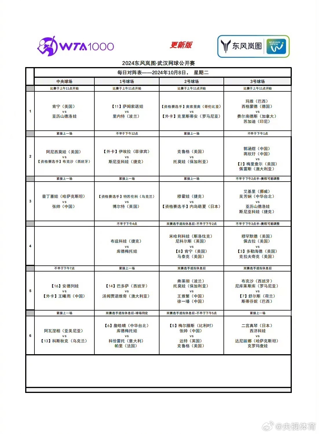 2024武网正赛第二日,女单赛场张帅、王曦雨将先后亮相中央球场。张帅将对阵普丁塞娃,王曦雨则将挑战赛会16号种子安德烈娃。