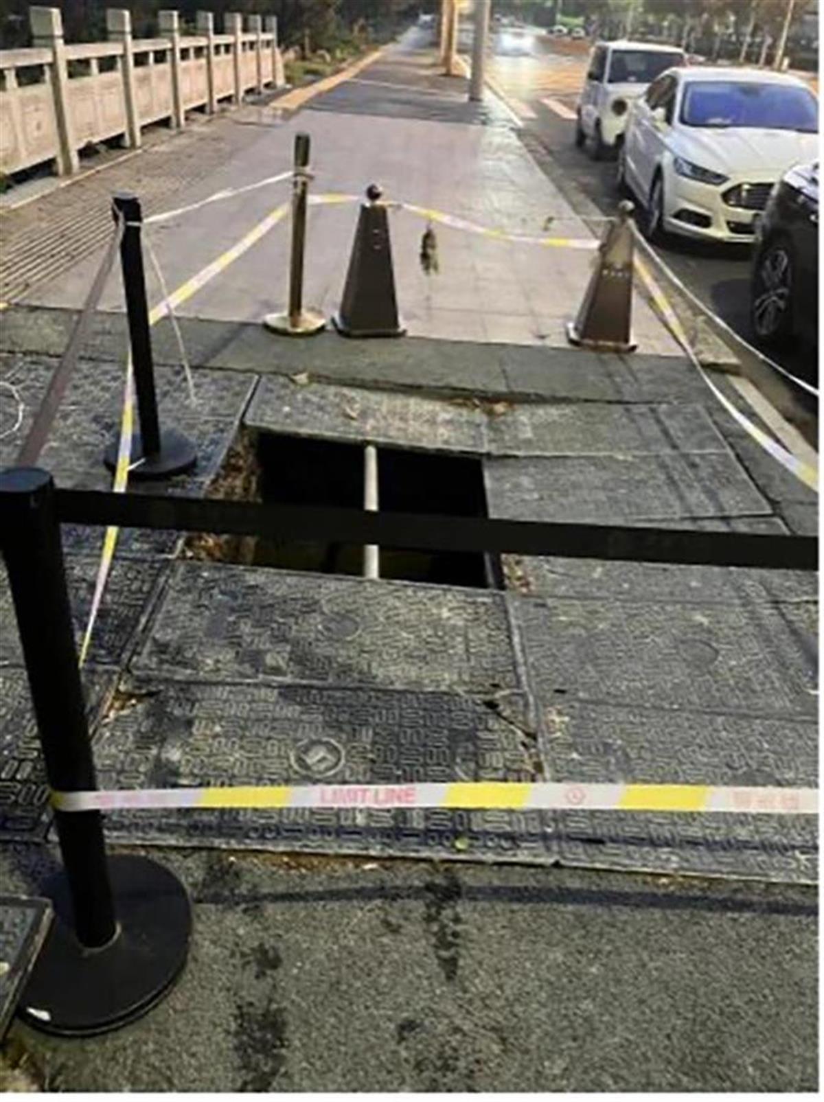 据高女士介绍,她家住在靖江市滨江新城的靖樾东方小区,该小区与她孩子上学的学校仅一条马路之隔。这个塌陷的窨井在上下学的路上,井盖总面积约为4平方米,几乎占据了整个人行道路,平时路人都得在上面走来走去。9月19日下午,婆婆和往常一样准备走过桥面去接孩子放学,不料其中一块井盖凹陷松动且一端翘起,婆婆随后和两块井盖一起掉入井中。