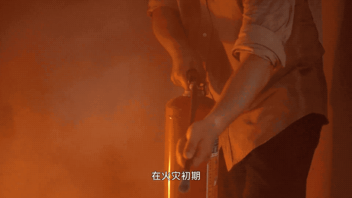 提起灭火器、拔出保险栓、握住软管、按压灭火器压力阀,然后对准火苗根部进行灭火。注意,灭火时需站在上风位。
