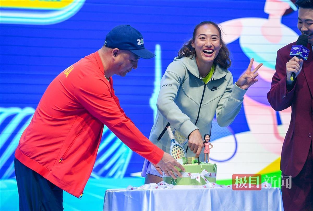 在舞台上给郑钦文献上鲜花的粉丝王聪告诉记者,她是特意从纽约来武汉给郑钦文庆生的。她介绍:“2022年我开始关注郑钦文的比赛,在当年的美网开始现场看她比赛。这次坐了24个小时的飞机来到武汉,很期待她在家乡父老面前比赛,希望她能取得好成绩。”